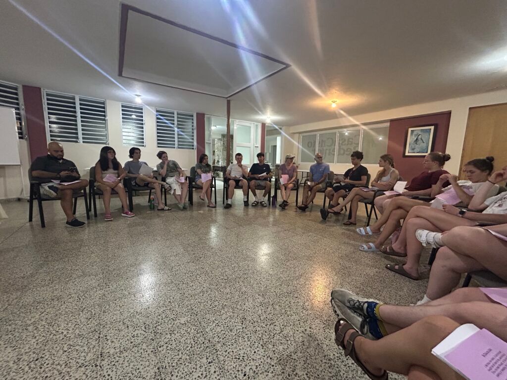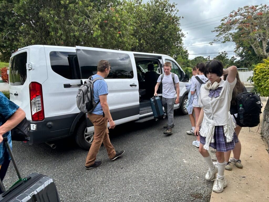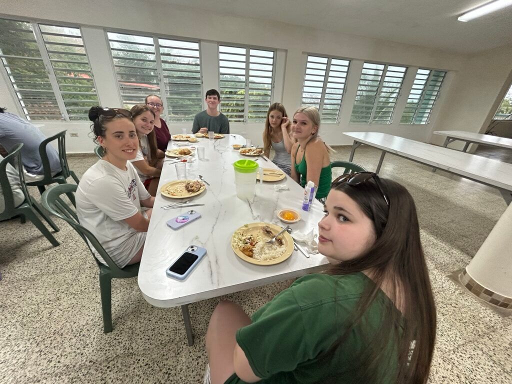 Hi, this is Moira from the 2025 High School youth group! Today we took off from DCA and landed in San Juan’s airport, SJU. This was my sister and I’s first flight (personally) and throughout the day, youth explored the airport terminals before landing in the city. We ate at a local restaurant outside San Juan before heading up the winding, and seemingly endless mountain roads. Several bonus factors of our Resort were the salt-water pool and various wildlife!