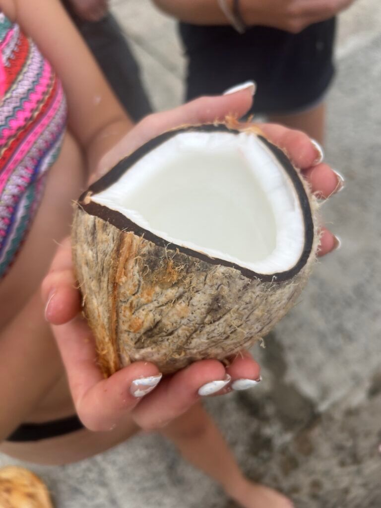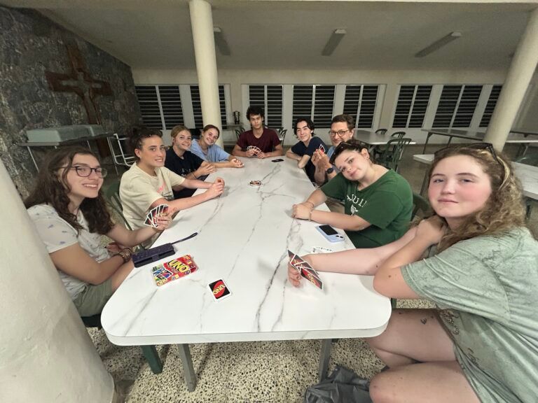 We went to the pool after dinner to explore the outdoors a little and we found and cracked open a coconut! Some of us drank some coconut water and tried the meat. After our first great day, some of the youth played a fun round of uno before calling it a night and heading to bed. We are so grateful to be blessed with the opportunity to help those in need and we can’t wait to continue our worship here In Puerto Rico! We’ll see you tomorrow.
